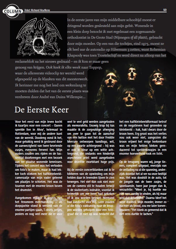 In deze column, met als titel De Eerste Keer, belicht hij herinneringen aan belevenissen die rechtstreeks of zijdelings te maken hebben met het genre dat een groot muzikaal stempel drukte op de vormende jaren van zijn jeugd.