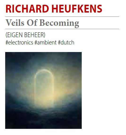 Kwam Richard Heufkens vorig jaar met het fraaie The Persistence Of Drift (zie iO203), een paar maanden later is zijn volgende project/album Veils Of Becoming een feit. Een anderhalf uur durend werkstuk bestaande uit zeven stukken die op het eerste gehoor veel avontuurlijker en een tikkeltje experimenteler aandoen maar gaandeweg soortgelijk verdiepende en fraai geproduceerde ambient bieden. In het bijgaand schrijven omschrijft hij dit werk als: "Zeven klankgedichten, zeven stations langs een innerlijke mythe. Een klankreis die ontregelt, transformeert en uitmondt in stilte." Daarmee is de toon behoorlijk gezet, want verwacht geen melodieuze en makkelijk in het gehoor liggende suites maar langzaam voortschrijdende klanktapijten die omgeven zijn door diepe drones, zo nu en dan een dissonant geluid en geluidseffecten. Af en toe zijn er duidelijk raakvlakken met de deep ambient van Michael Stearns en Steve Roach, maar het werk van Heufkens klinkt veel aardser. In Buried Currents wordt de sfeer van een trage wandeling door een druppelende, vochtige grot opgeroepen. Het half uur durende afsluitende laatste deel zorgt voor een berustend einde. Fraaie plaat om van begin tot eind op een winteravond uit te luisteren en volledig te ondergaan.