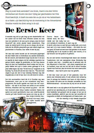 In deze column, met als titel De Eerste Keer, belicht hij herinneringen aan belevenissen die rechtstreeks of zijdelings te maken hebben met het genre dat een groot muzikaal stempel drukte op de vormende jaren van zijn jeugd.